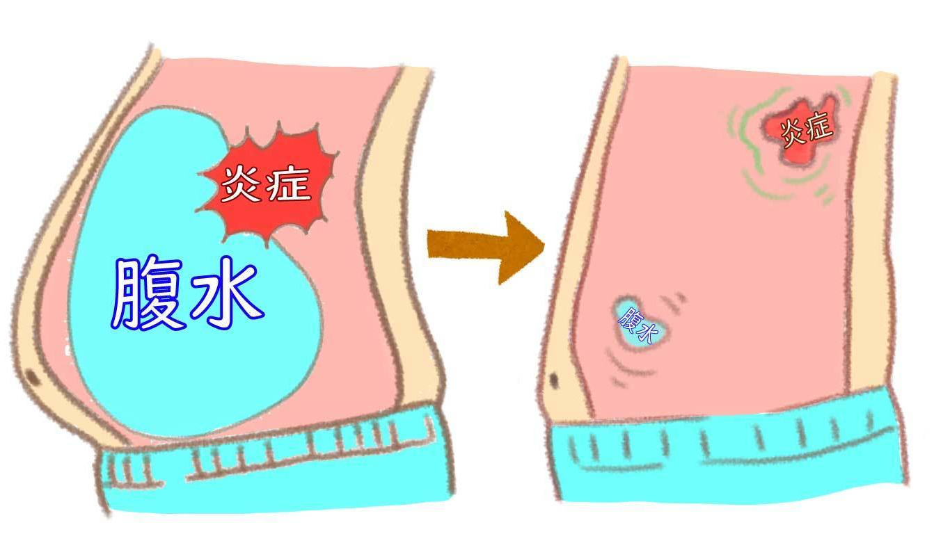 しかし腹水の症状が出ている方は、様々な原因で水分の排出が上手くできず、体に溜まった状態が続きます。