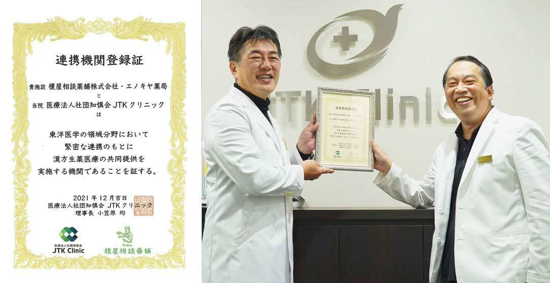 当漢方薬舗では、漢方生薬医療の提供において(医)知慎会 JTKクリニックと連携しております。難しい病気や慢性病のご相談をお受けしているからこそ、医師やクリニックとのつながりを大切にし、幅広い知識と漢方に関する情報共有を基に皆様にご提案を行っております。