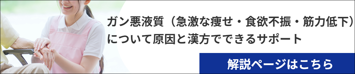 「ガン闘病中の方の漢方相談」「悪液質の不安に体調から支える漢方」「副作用の不快感軽減・体力向上支援」ガン闘病中の患者様やご家族へ — 漢方を使ったサポートをご提案